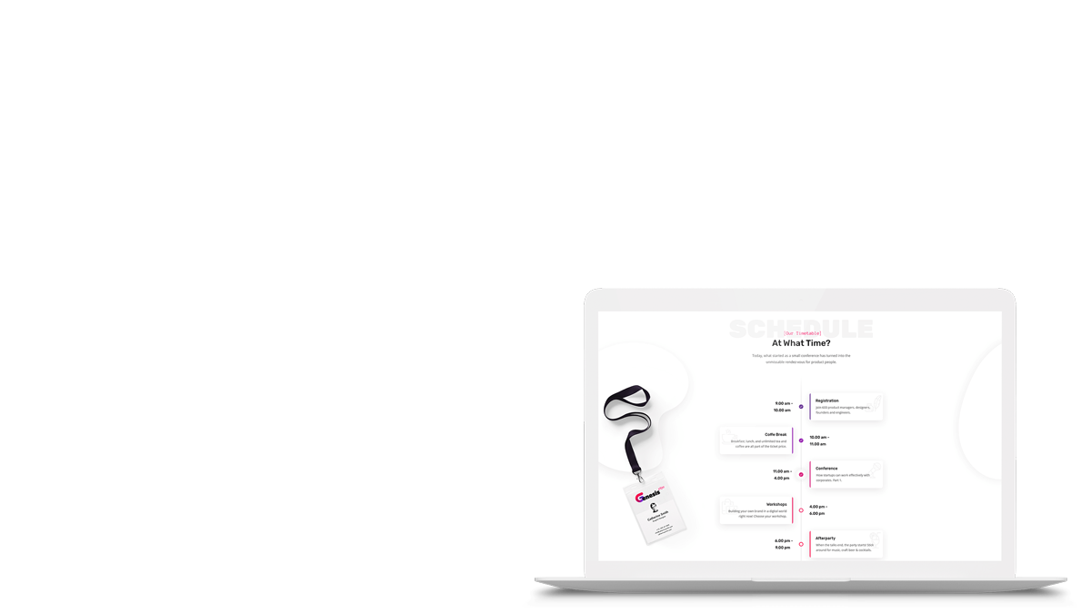 GenesisExpo includes different variants of timetable. Whether you would like to show a general overview and timetables of the events, or you are looking to make an in-depth event content showcase, choose which one.