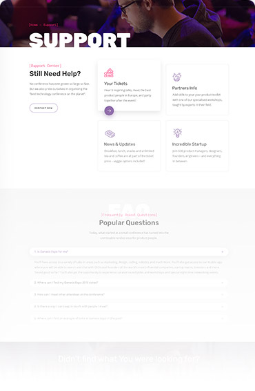 Present all the speakers and participants in GenesisExpo`s beautiful layouts. Choose your favorite variant of layout and create your own. You can create also single speaker profile with all relevant information.